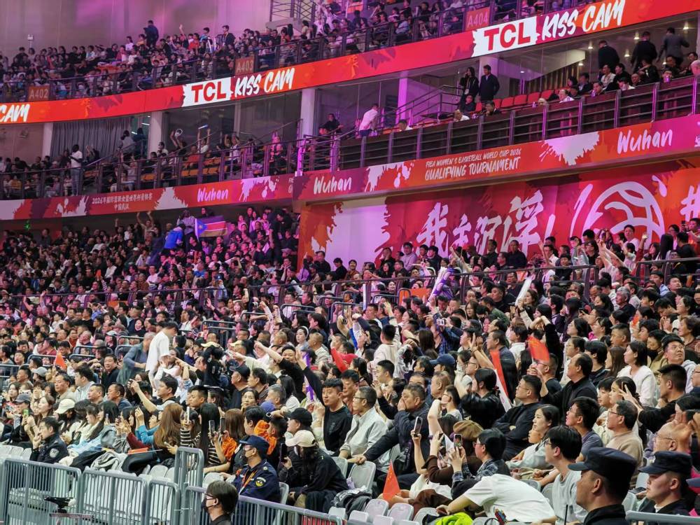 不雅众在武汉体育中心体育馆不雅看国外篮联女篮宇宙杯经验赛。新华社记者 乐文婉 摄