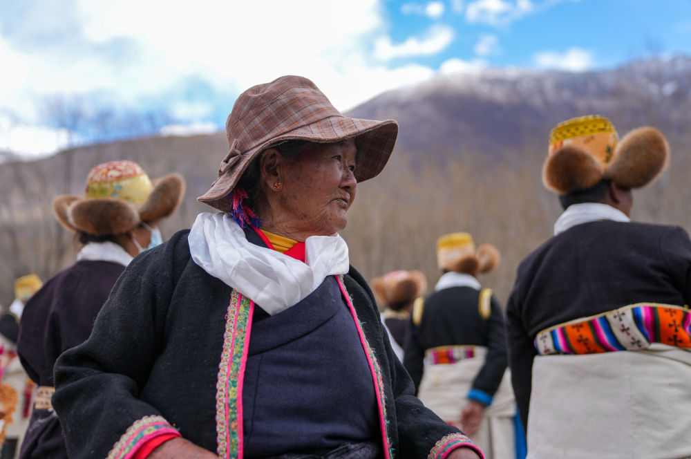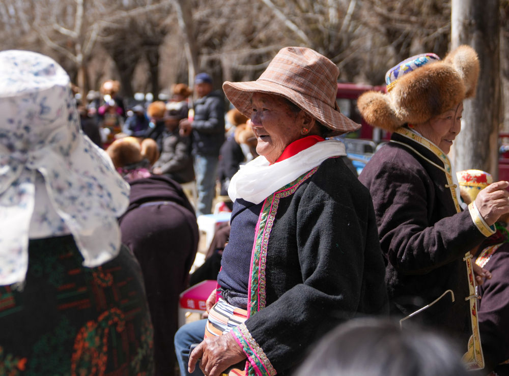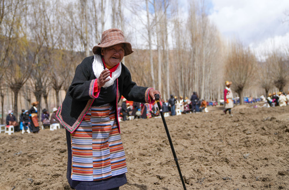 卓玛吾珠和乡亲们在庆祝春耕庆典上(3月16日摄)。