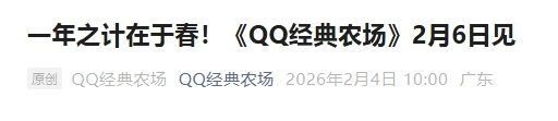 据“QQ经典农场”微信公众号音问,腾讯《QQ经典农场》官宣将在2月6日认真牵挂,同步登陆QQ和微信。