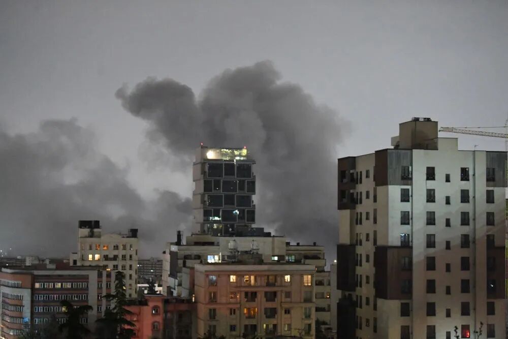 这是3月28日凌晨拍摄的伊朗德黑兰市区爆炸后的浓烟。新华社记者 沙达提摄