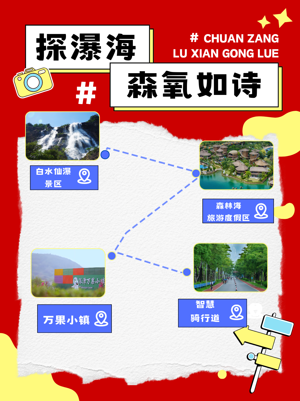 瓦解:白水仙瀑景区→丛林海旅游度假区→万果小镇→贤达骑行说念