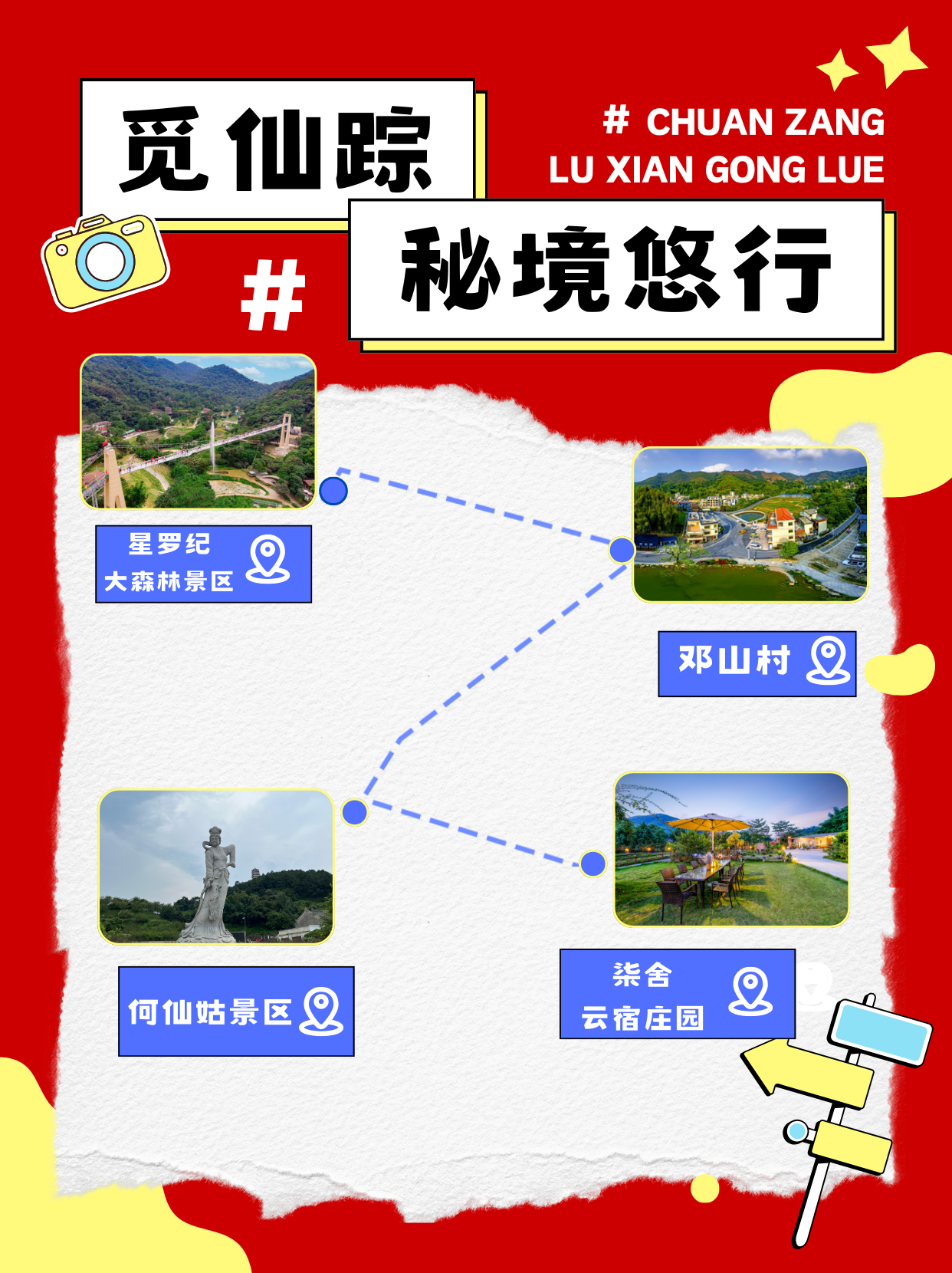 瓦解:星罗纪大丛林景区→邓山村→何仙姑景区→柒舍云宿庄园