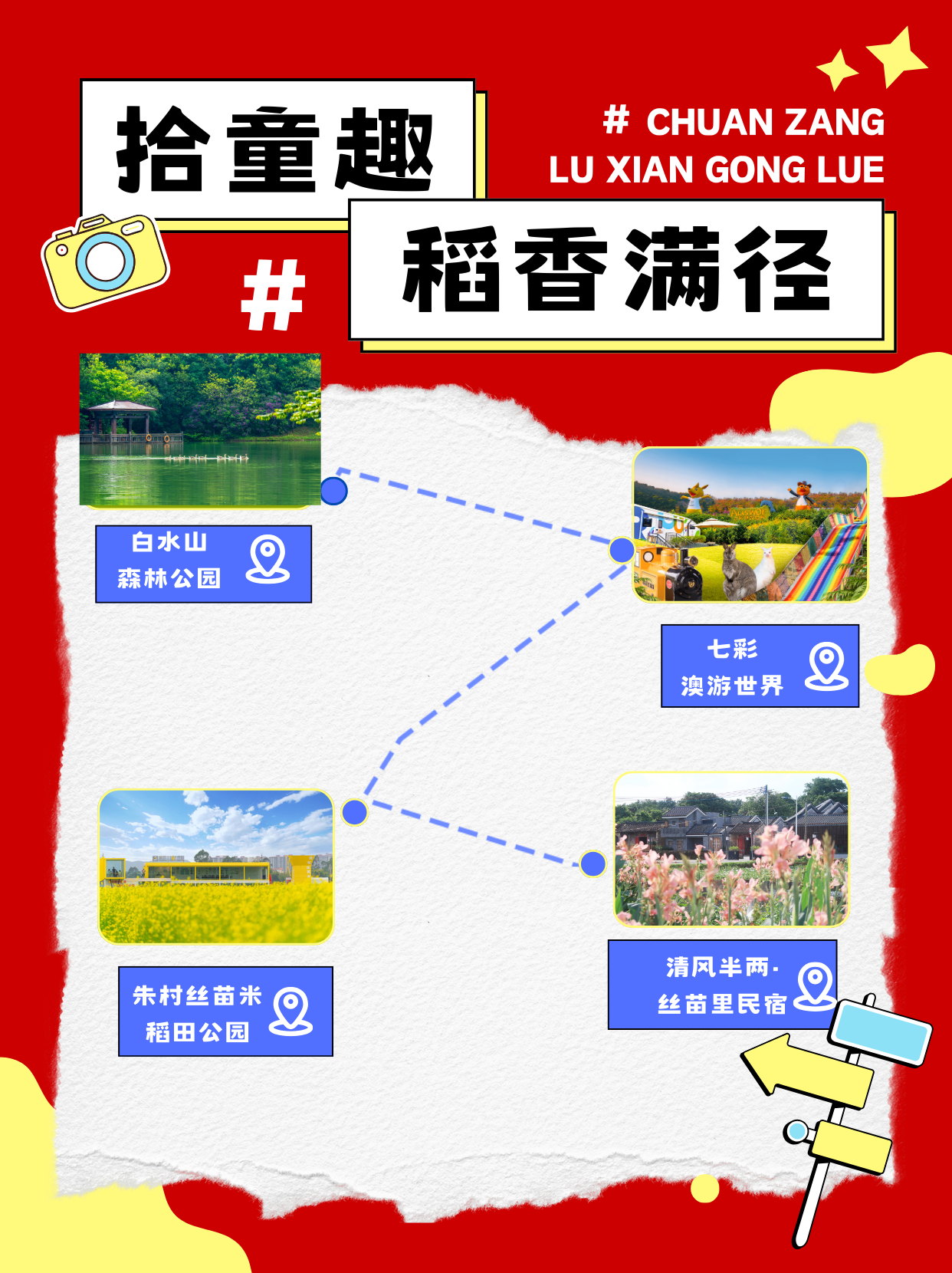 瓦解:白水山丛林公园→七彩澳游全国→朱村丝苗米稻田公园→清风半两·丝苗里民宿