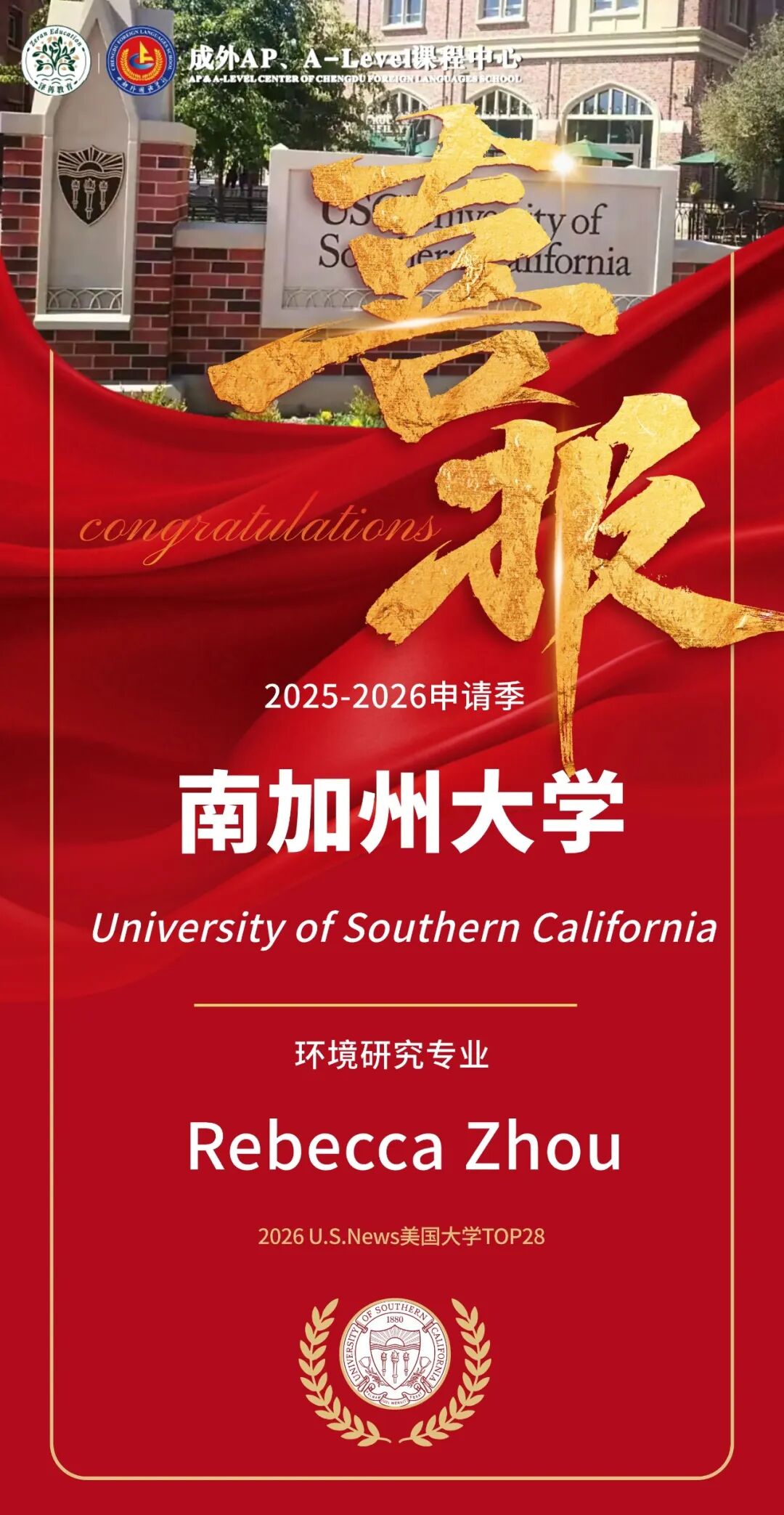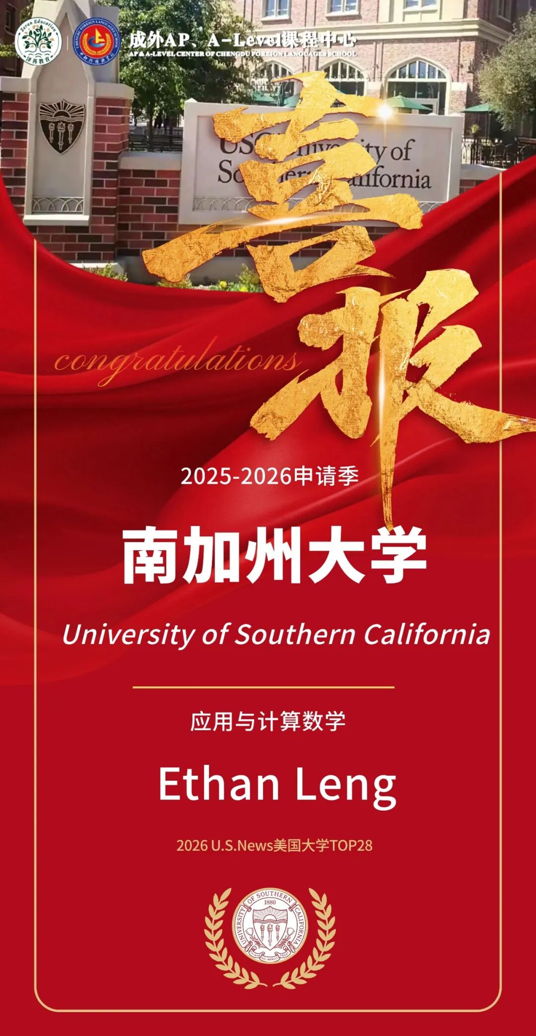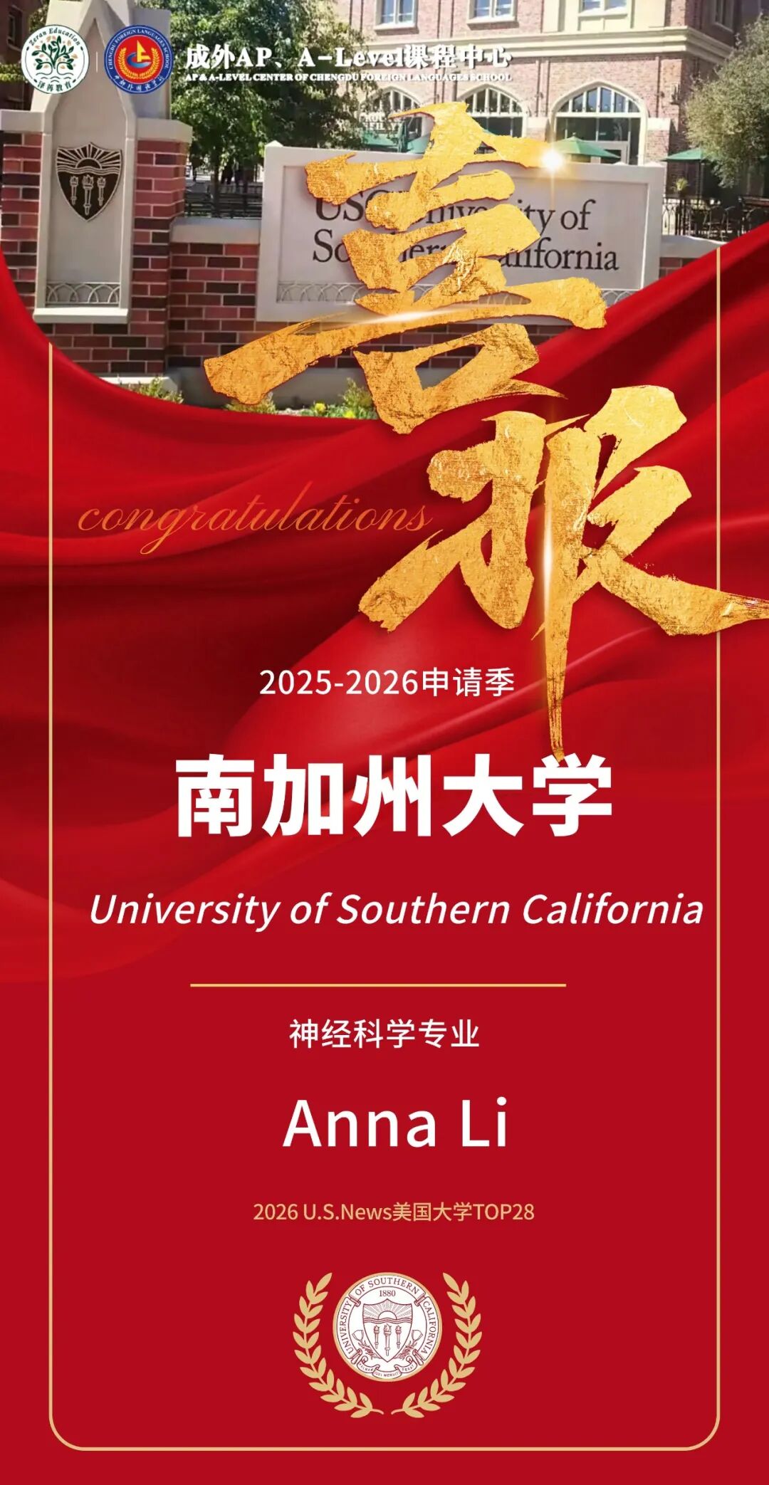南加大的三枚录取,聚焦于诈骗数学、神经科学、环境商议这三个代表将来科技发展标的的硬核专科,充分体现了我校学子在前沿科学限制的苍劲实力。