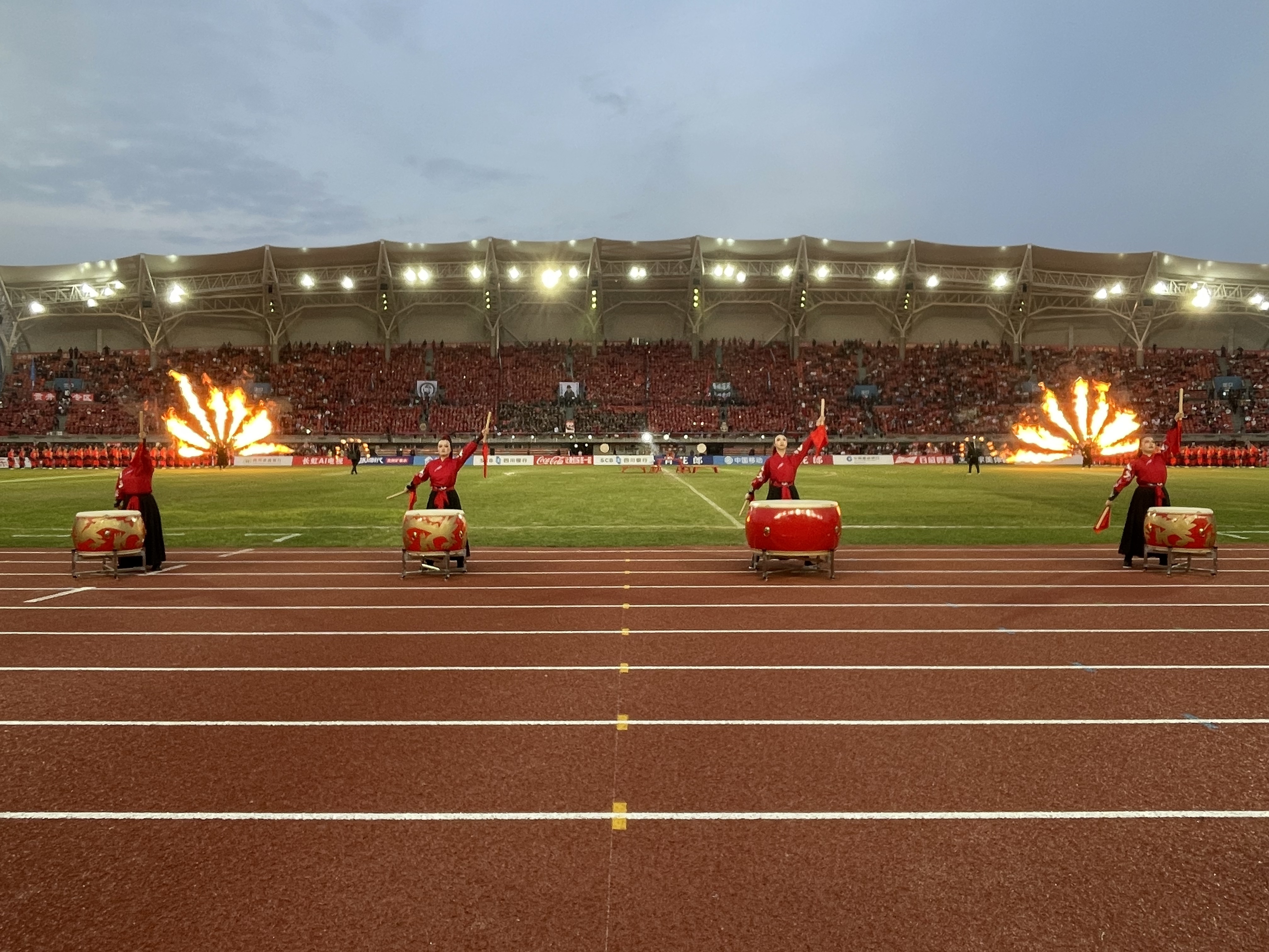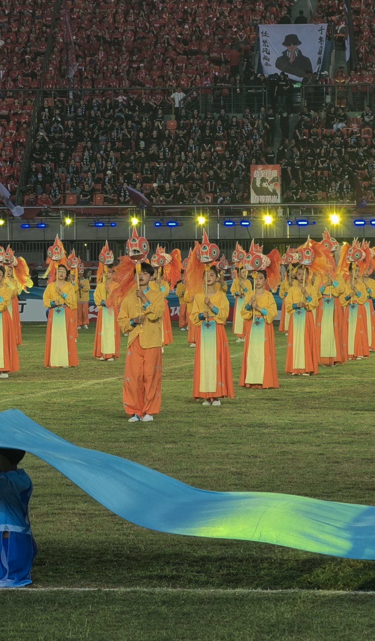 “咚咚咚——”在喧天的战饱读声中,自贡市五宝中学校和成佳中学校携手打造的《盐都狮魂震川超》颠簸登场,以非遗之魂、功夫之力,燃动川超主场。21面集体饱读、11头醒狮、400名乡村少年,功夫扇十路纵队气势如虹,“自贡”二字铿锵亮相,八个齐心圆齐心聚力。