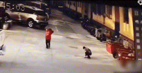 在店里吃饭的顾主连忙将烟花往门外踢