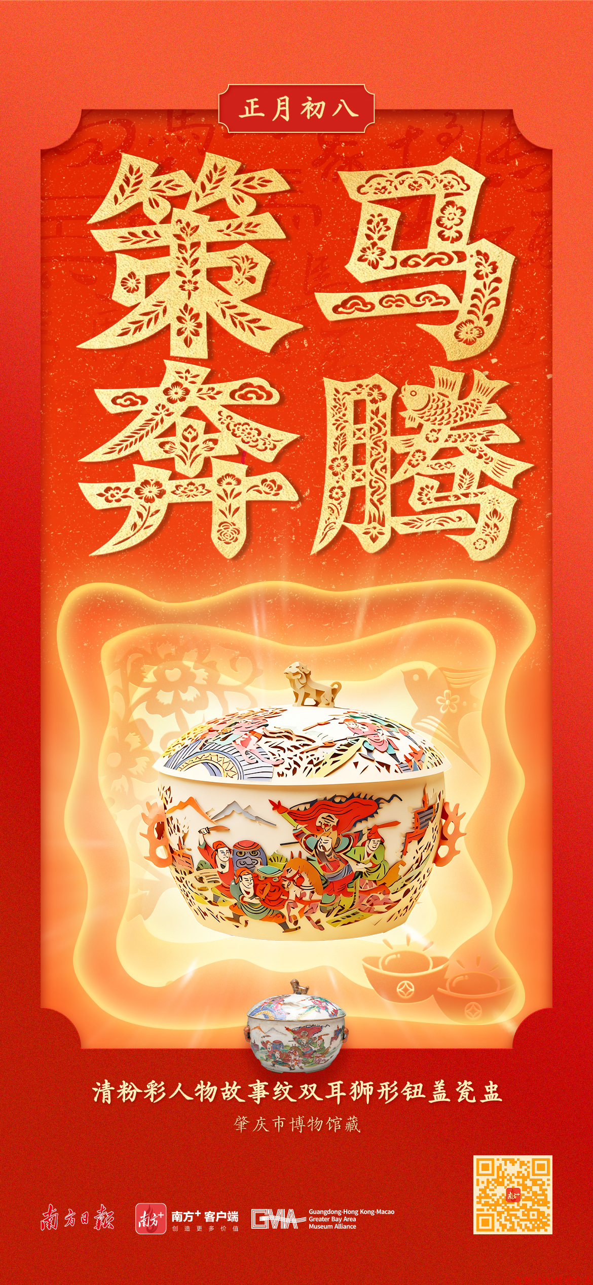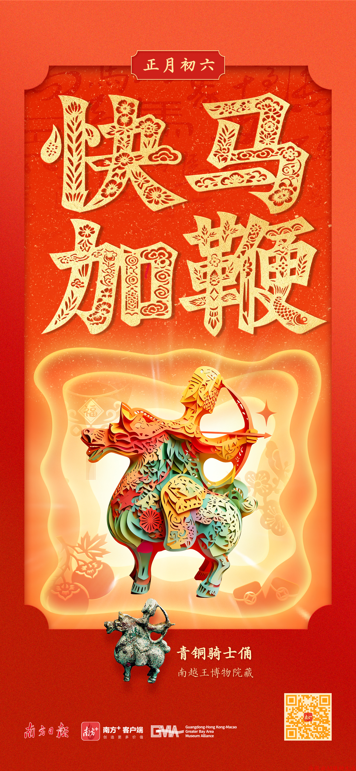 这个马年春节,南边日报、南边+联接粤港澳大湾区博物馆定约,联动广东省博物馆、澳门博物馆、深圳博物馆、南越王博物院、广州艺术博物院、澳门艺术博物馆、佛山市博物馆、肇庆市博物馆等,推出“湾区宝物贺新春”马年特辑——